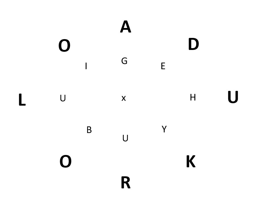Rekwizyty: Potrzebna kartka zadrukowana literami z krzyżem po środku, na przykład taka jak na poniższym obrazku: