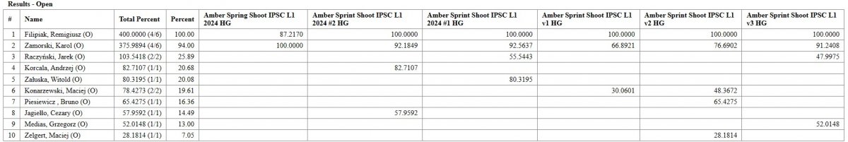 Na zawodach była jeszcze klasa Piotr Kasa Bilon, pojawiła się ona dlatego, że bardzo nie chciałem być klasyfikowany na zawodach, które sam organizuję, poza tym strzelałem niektóre tory 2 razy, jako reshoot i uzyskując lepszy wynik mógłbym kogoś pozbawić uczciwie wywalczonej pozycji, taka sytuacja by nie przeszła na zwodach Amber Sprint Shoot, ekipa sędziowska robiła swoją robotę perfekcyjnie.